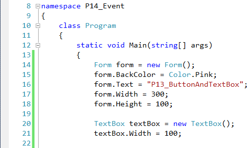 - คัดลอกโค้ดจากโปรเจกต์ที่แล้ว P13_ButtonAndTextBox มาเพิ่มคำสั่งใหม่ (ในกรอบสีส้ม)